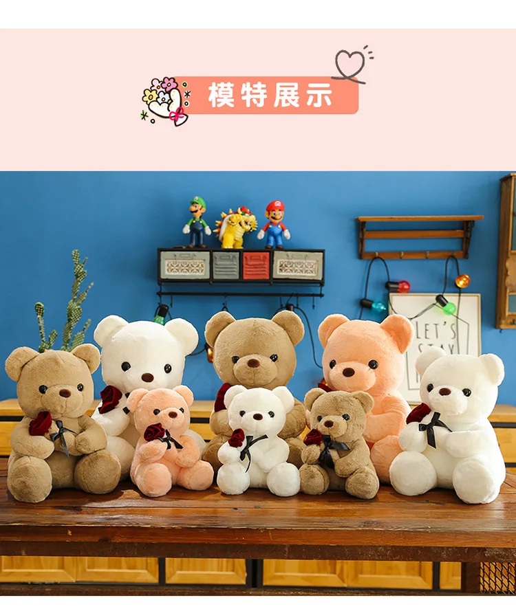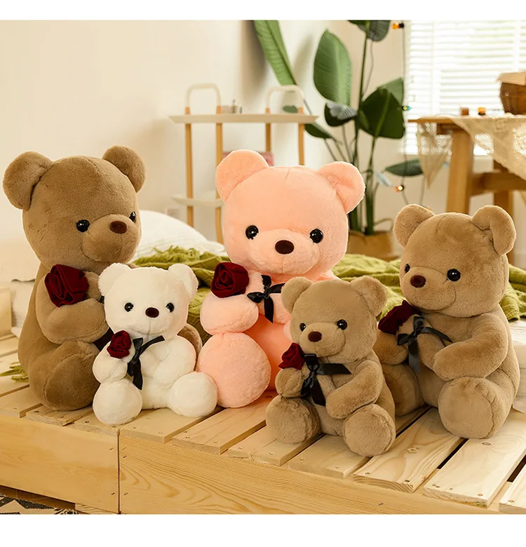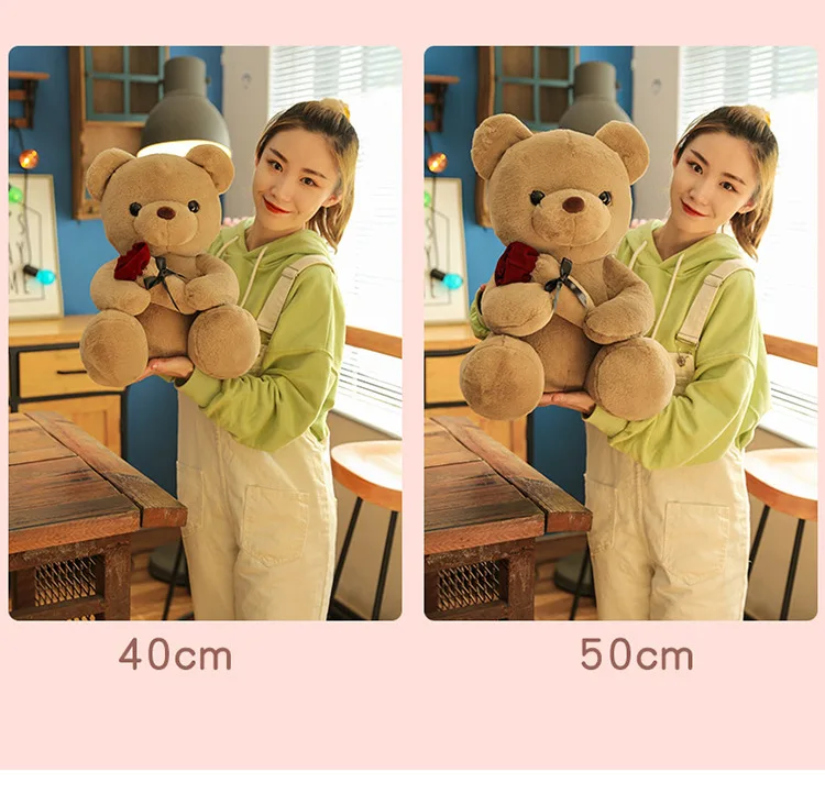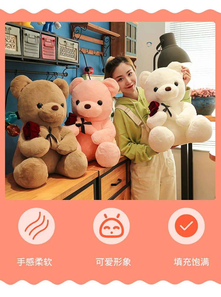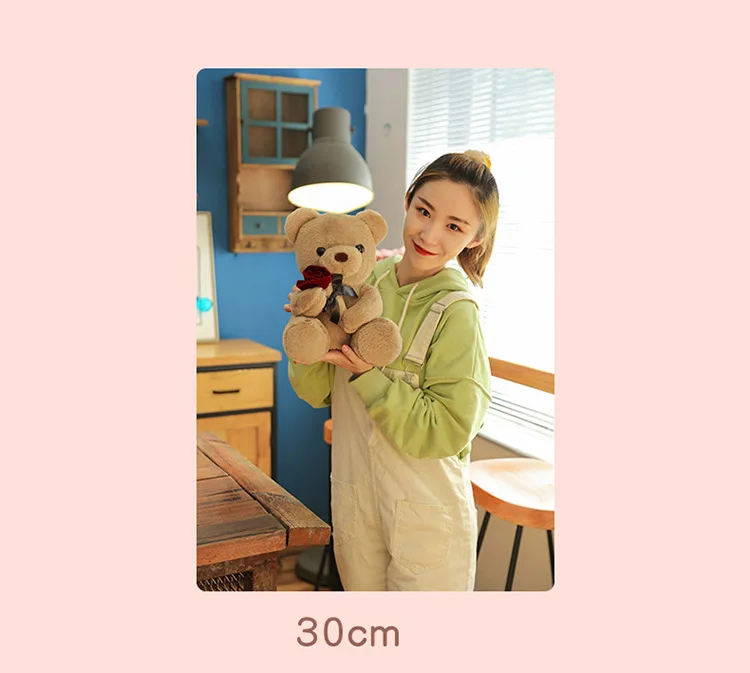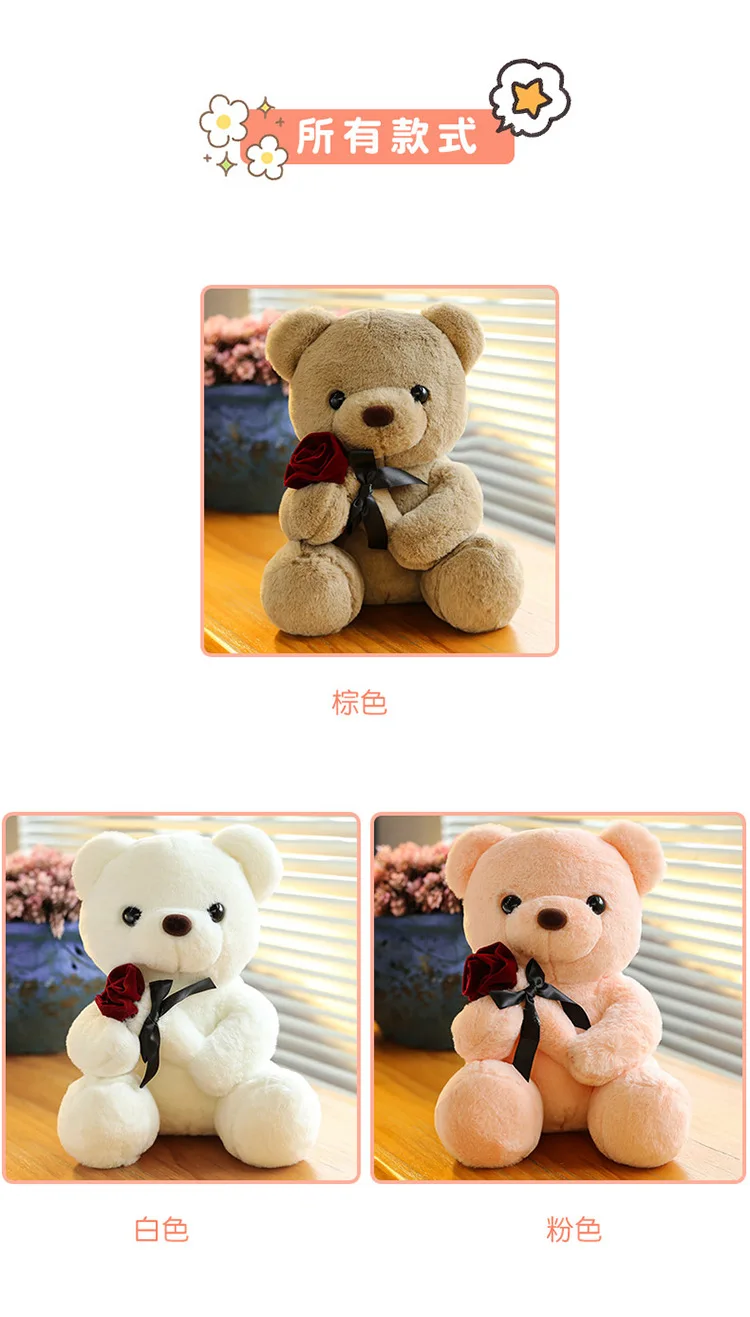 30-50cm Kawaii Rose Bear for Valentines Day Gift Teddy Bears Stuffed Animal Rose Bear Doll Valentine's Day Gift for Girlfriend