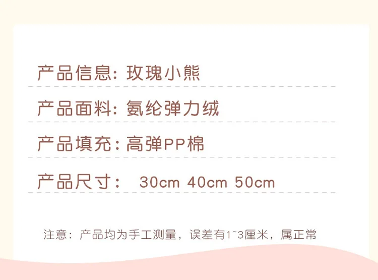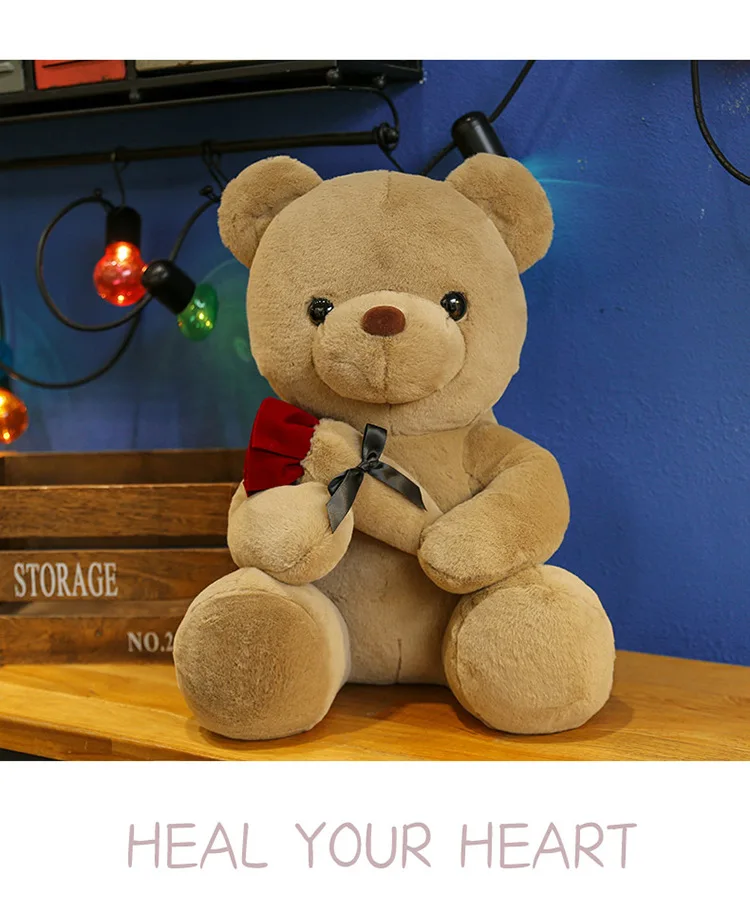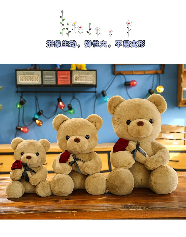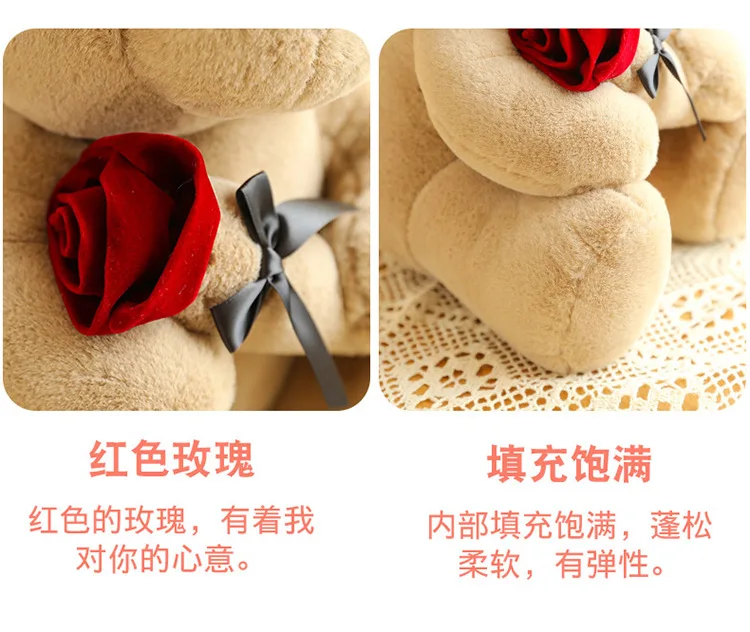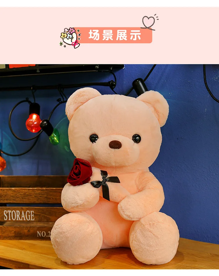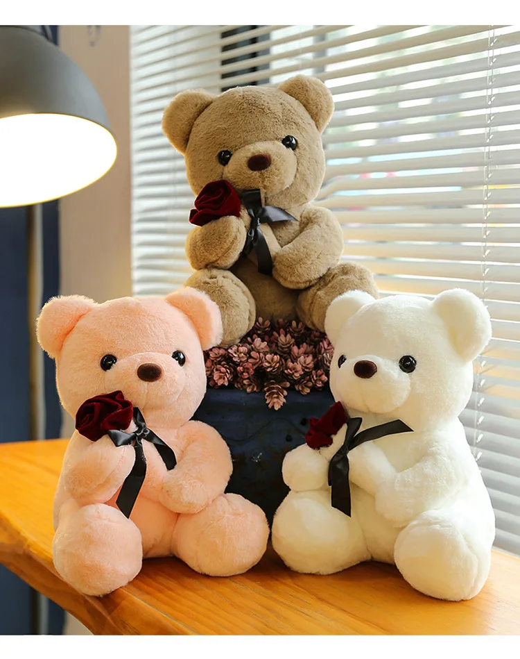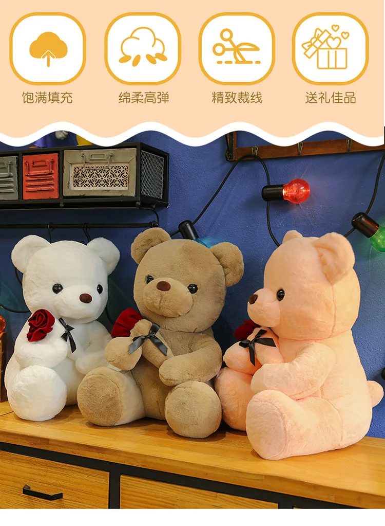 30-50cm Kawaii Rose Bear for Valentines Day Gift Teddy Bears Stuffed Animal Rose Bear Doll Valentine's Day Gift for Girlfriend