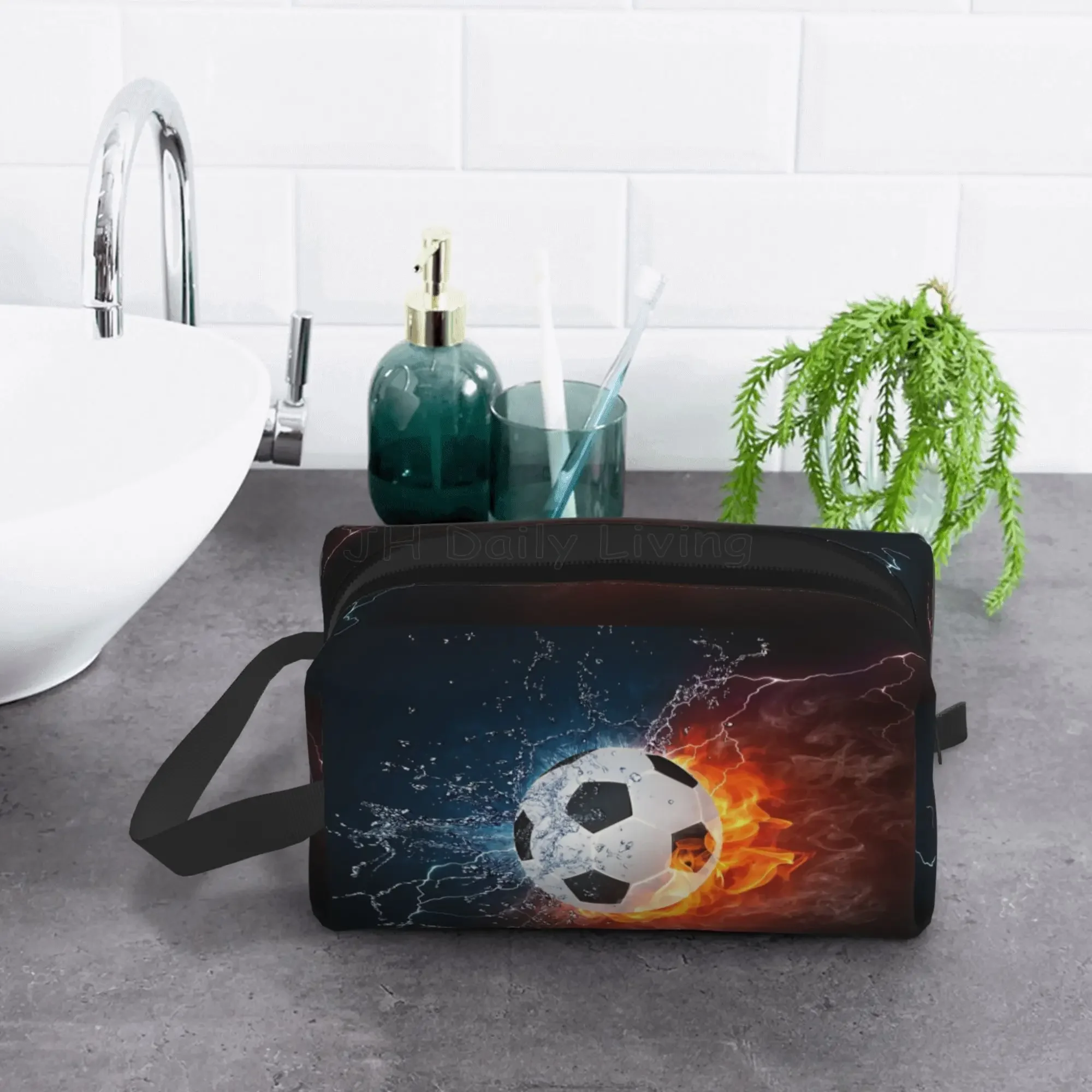 Soccer Football Ball Art Pattern Storage Bags for Men Women Portable Makeup Cosmetic Bag Large Capacity Travel Storage Organizer