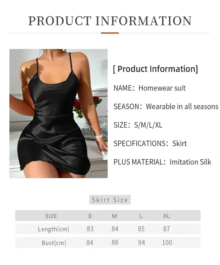 Valentine's Day Sexy Women's Summer Pajamas Backless Ice Silk Slip Short Mini Dress Simulation Silk Nightdress Casual Nighties